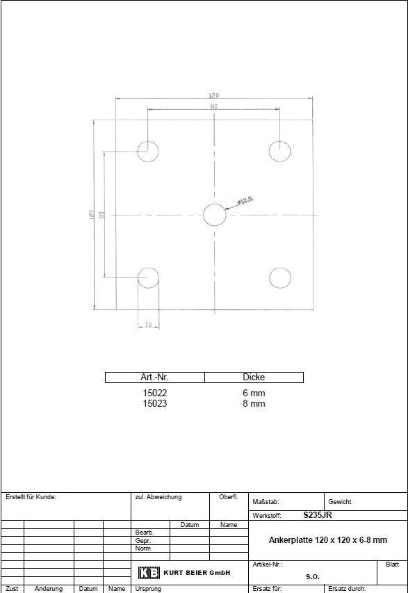 Ankerplatte 120 X 120 X 8