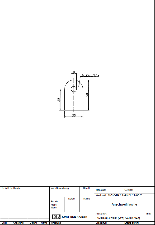 Produktinformationen "Lasche 50 X 30 X 6 Rundloch"