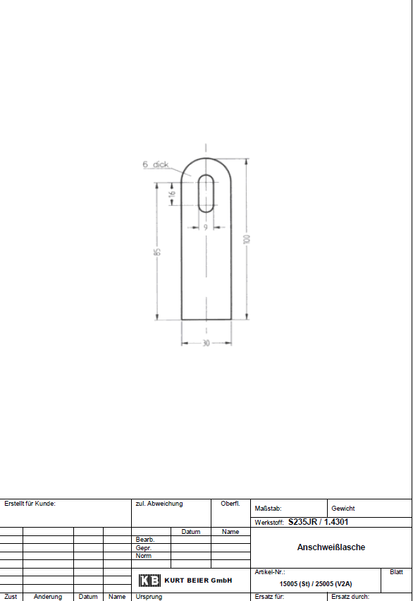 Produktinformationen "Lasche 100 X 30 X 6 Langloch"