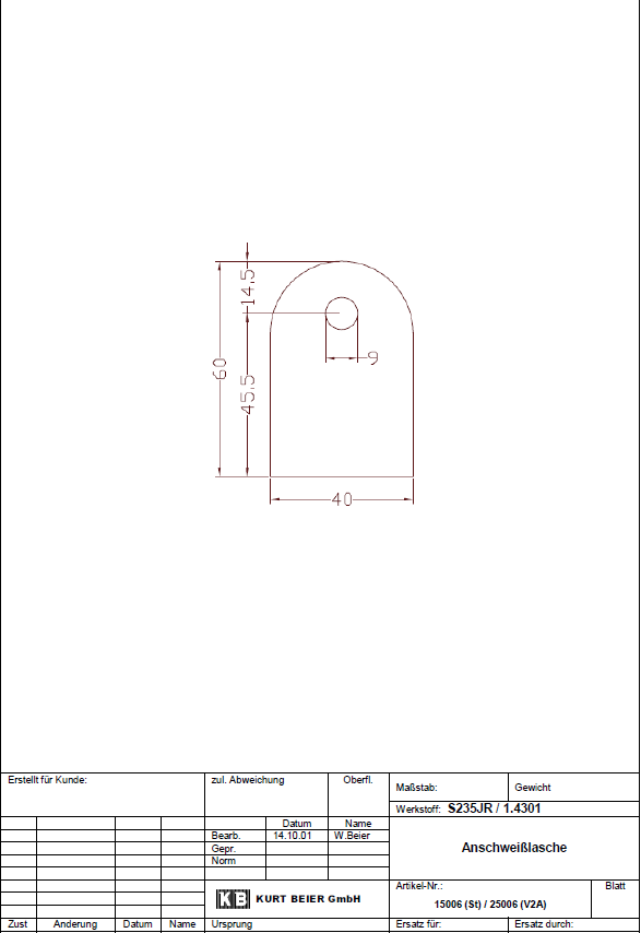 60 x 40 x 6 mm, Rundloch Ø 9 mm