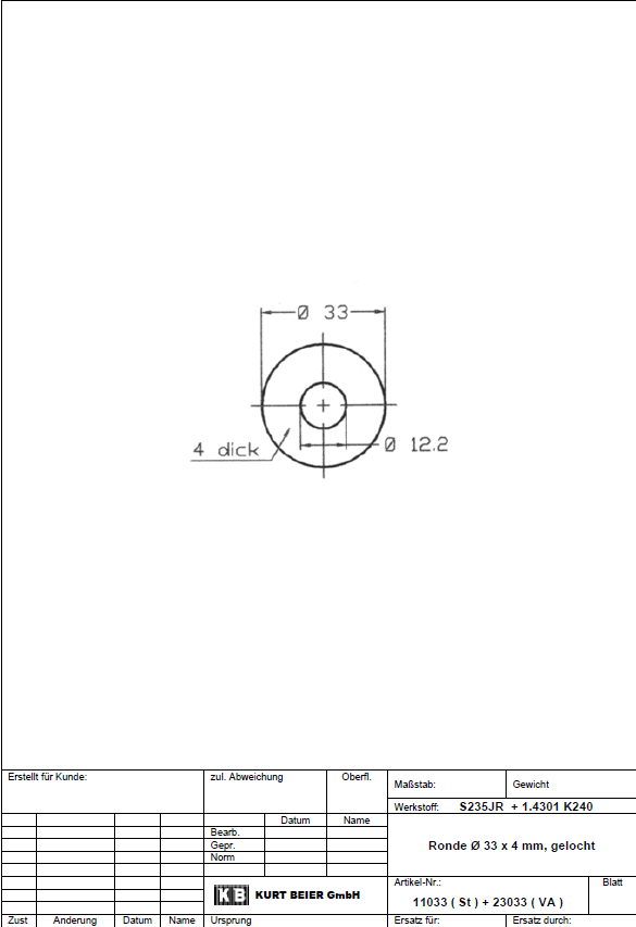 Ø 33 X 4 mm, mit Mittelloch Ø 12,2mm