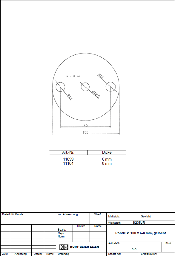 gelocht 2 X Ø 14 mm, und Mittelloch Ø 12,5 mm