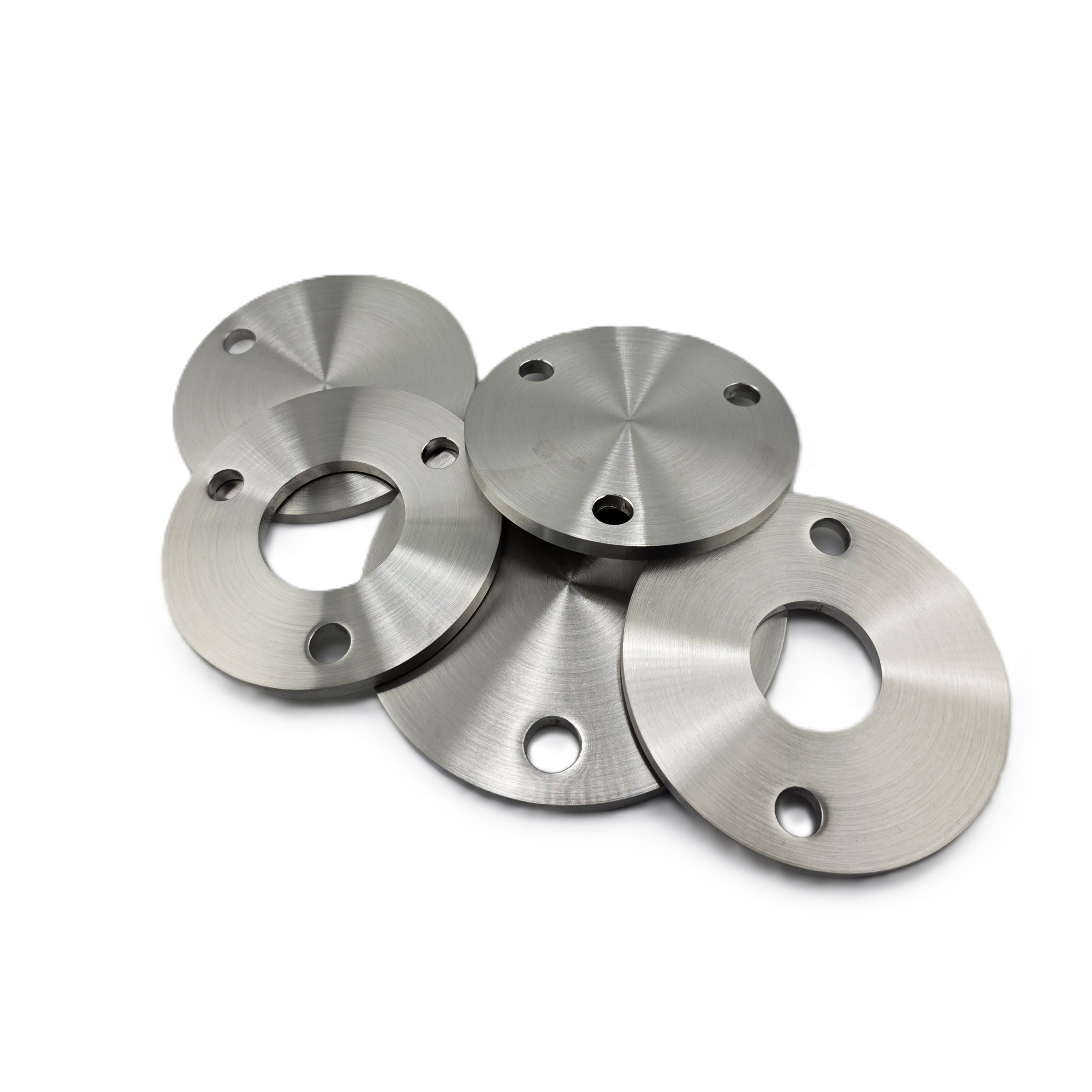 Edelstahl-Rondeeinseitig geschliffen K240 (einseitig Schutzfolie)Ø 80 x 4 mm2 Löcher Ø 11 mm auf Lkr. 50 mm